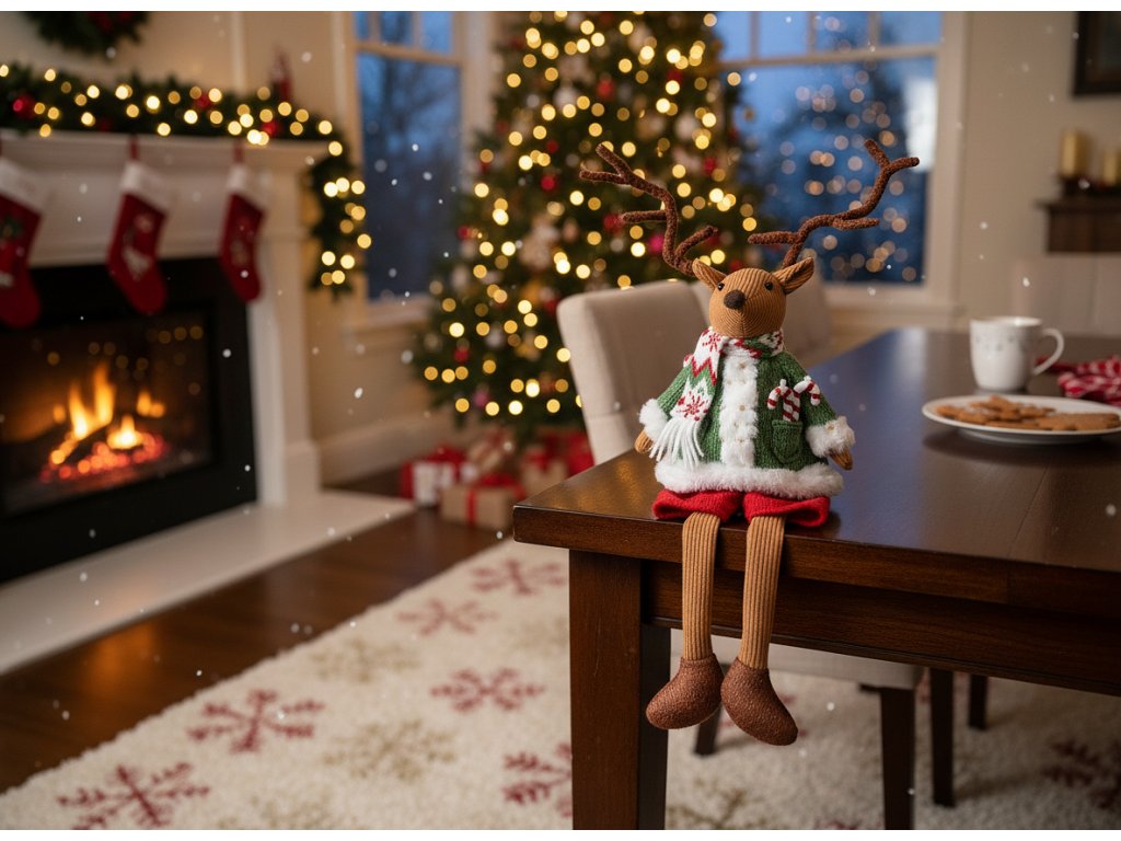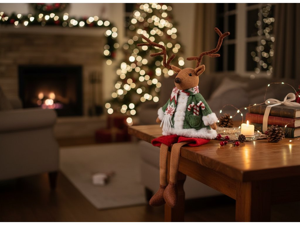 Vánoční sobík je vyroben z odolného polyesteru, písku a kovu. Je odolný, esteticky příjemný a nepochybně bude sloužit jako vánoční dekorace po mnoho let.
