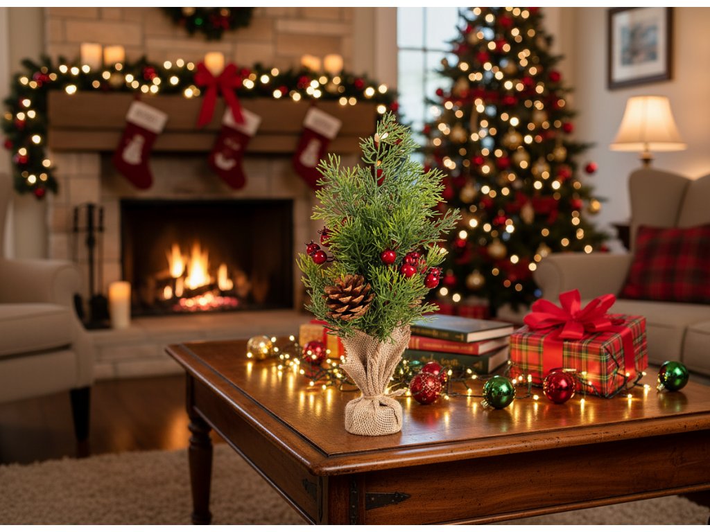 Okouzlující miniaturní vánoční stromeček je dokonalou dekorací pro svátky, která vnáší zimní atmosféru do vašeho interiéru. Stromeček je vyroben z větví zdobených červenými bobulemi a šiškou, což mu dodává přirozený lesní vzhled. Na základně je jutový sáček, který mu dodává rustikální šarm. Díky svým kompaktním rozměrům je ideální jako dekorace na stůl, krbovou římsu, psací stůl nebo parapet.