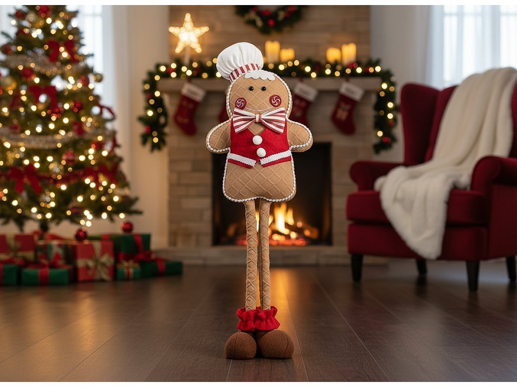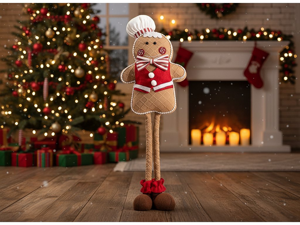 Perníčkový skřítek známý z oblíbených pohádek. - Teleskopické nohy umožňují nastavit výšku dekorace. - Stylová kombinace módních odstínů teplé hnědé s vánoční červenou a bílou. - Přirozený vzhled díky prostorným doplňkům – motýlku, knoflíku, ponožkám.