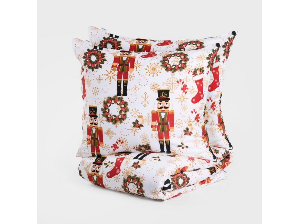 Vánoční mikrovláknové povlečení | NUTCRACKER | bílé s potiskem | 220 x 200 cm + 2 x 70 x 80 cm | 716799