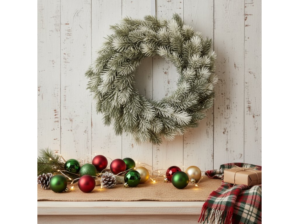 Husté, zasněžené větve napodobující přírodní jehličnany. - Minimalistická a elegantní vánoční dekorace. - Odolná a opakovaně použitelná – po mnoho sezón. - Ideální na stůl, stolní desku, dveře nebo okna.