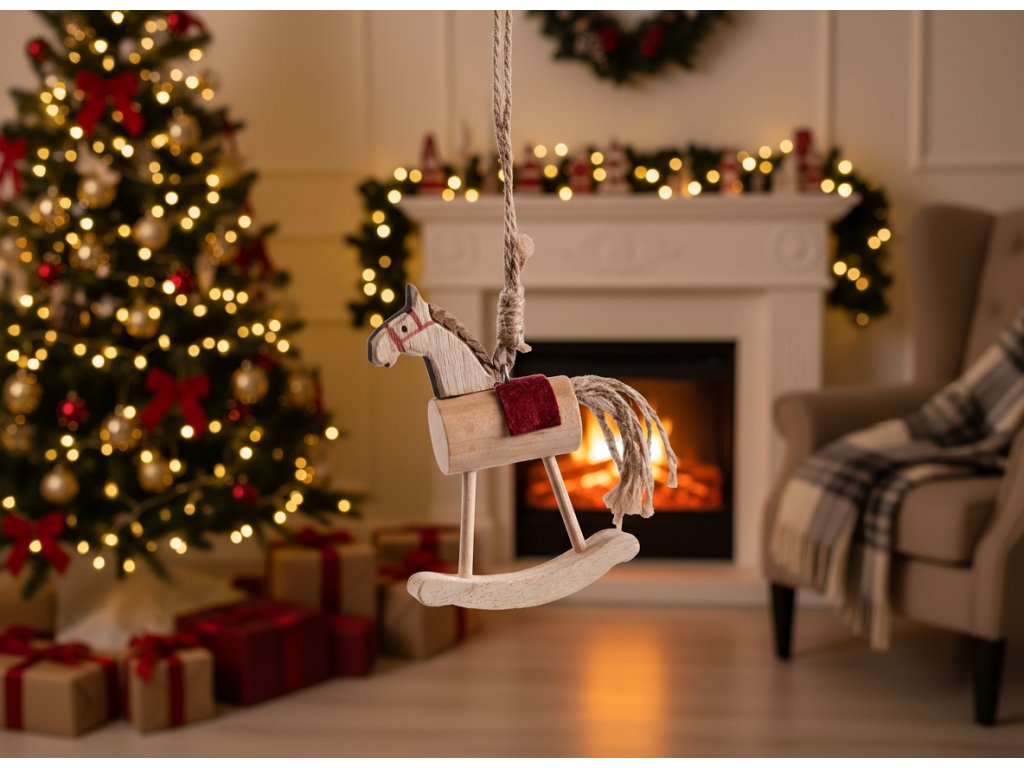 Vyberte si dřevěného koně a vaše Vánoce budou plné tepla a tradičního kouzla. Jeho jednoduchý, ale půvabný design v kombinaci s jemnými detaily, jako je červený akcent na sedle, z něj dělají perfektní doplněk k vašemu vánočnímu stromečku, sváteční výzdobě nebo jako ozdobu na krbovou římsu.