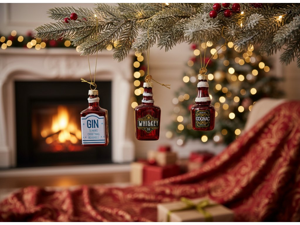 Přívěsky byly pečlivě vyrobeny s důrazem na nejmenší detaily. Sada obsahuje tři ozdoby, každá ve tvaru jiné láhve – toniku, ginu a whisky, což celku dodává hravý a originální nádech. Tyto vtipné přívěsky jsou ideální k zavěšení na vánoční stromeček, ale hodí se také jako dekorace na stolní dekorace, girlandy nebo jiné slavnostní aranžmá. Díky svému originálnímu designu se perfektně hodí jak do tradičních, tak do moderních interiérů, kde vnesou nádech vánoční magie a radosti.