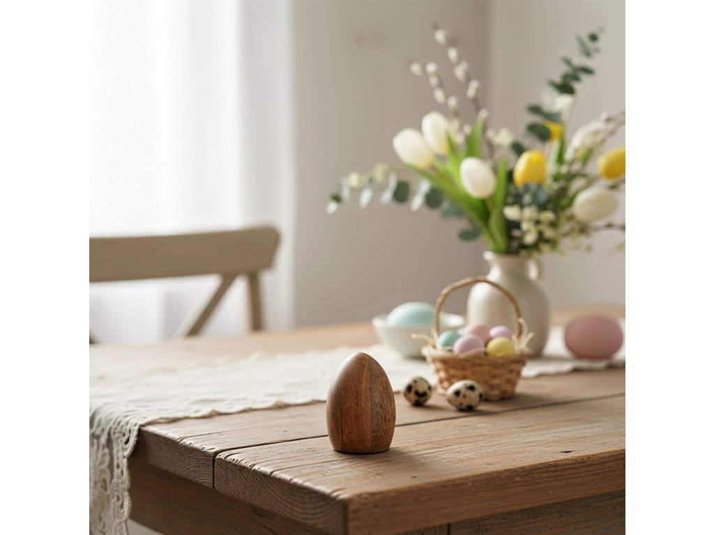 Přírodní materiály vnášejí do interiéru klid a autentičnost. Dekorace velké vejce z mangového dřeva 9,5x13,5 cm zaujme jednoduchou, organickou formou a jedinečným vzorem letokruhů. Každý kus má jedinečný charakter, díky čemuž se dekorace stává jemným, ale výrazným akcentem.