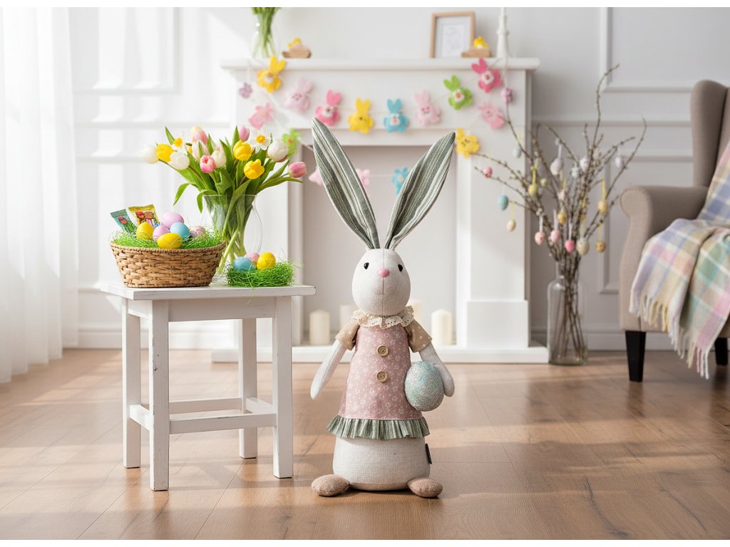 Velikonoční dekorační figurka FRANCY zajíček s vajíčkem 55 cm Výška 55 cm 845197