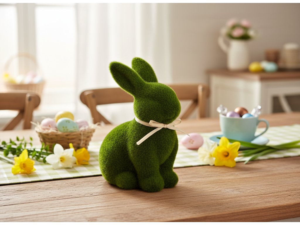 Zelený zajíček je jarní dekorace, která dokonale zapadne do výzdoby vašeho domova během velikonočního období. Bude se líbit nejen malým dětem, i když jemná textura figurky je určitě osloví. Můžete z ní vytvořit zajímavou dekoraci společně s vánočním věncem nebo ji umístit na poličku či parapet.