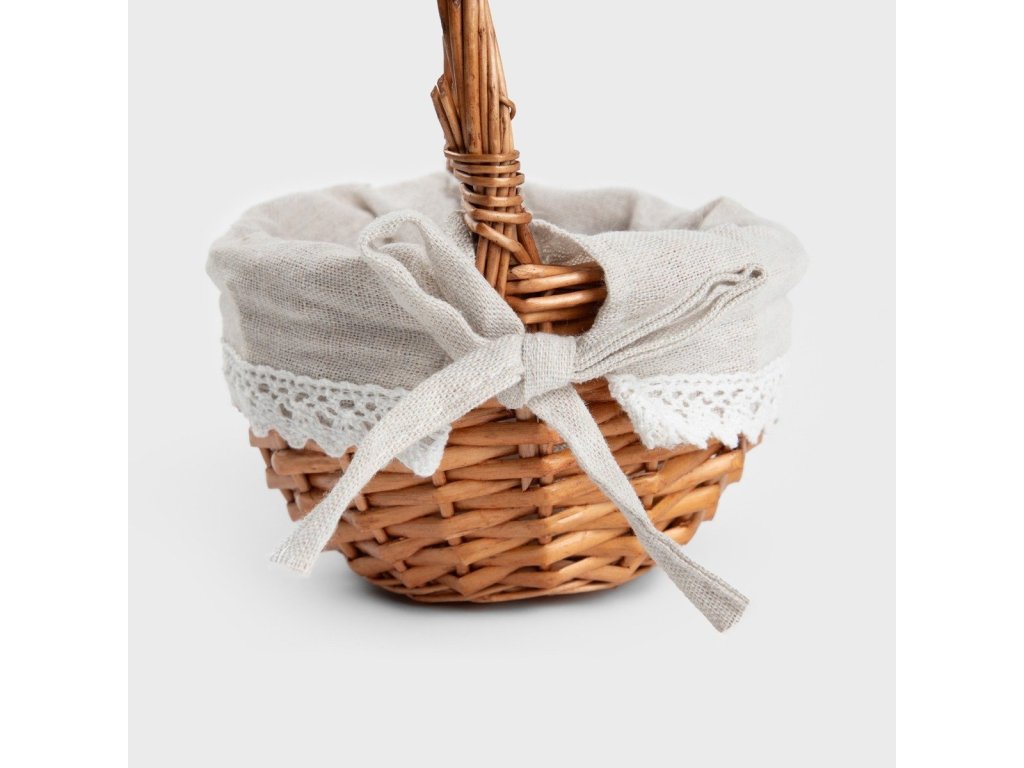 Košík je kombinací přírodního půvabu a praktičnosti. Je vyroben z vysoce kvalitního proutí a potěší jemnými detaily, jako je lněná tkanina a decentní krajka. Jeho kompaktní rozměry a rustikální styl z něj dělají dokonalý doplněk do každého prostředí.