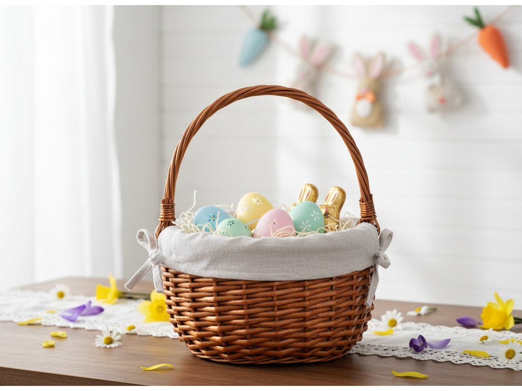Funkční – skládací rukojeť usnadňuje použití a skladování. - Ideální na Velikonoce – perfektní jako velikonoční košík na cesmínu nebo jako součást slavnostní výzdoby stolu. - Všestranné použití – vhodný na podávání pečiva, ovoce a jako dárkový košík. - Estetická podšívka – světlý materiál zdůrazňuje obsah a dodává mu elegantní nádech. - Nadčasový design – hodí se k rustikální, boho a klasické výzdobě.