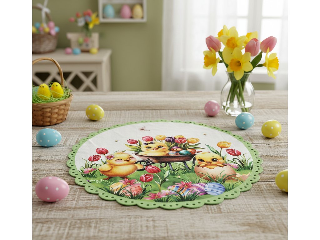 Velikonoční dekorační ozdobný ubrousek EASTERS CHICKS Ø 40 cm Mybesthome