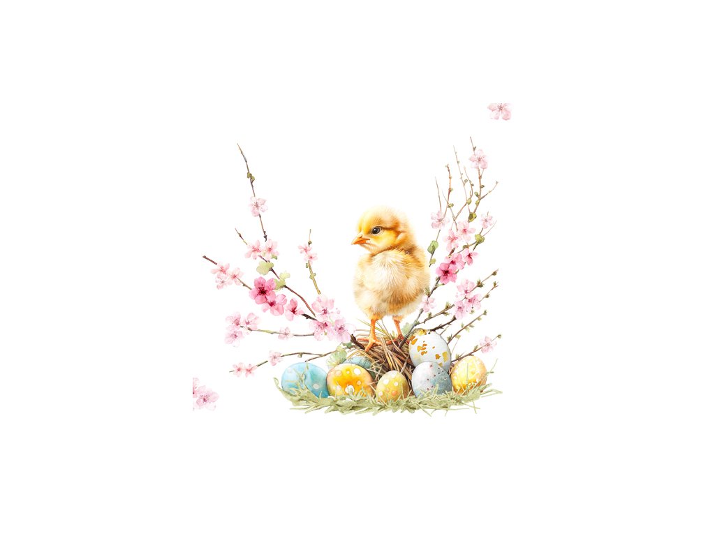 Velikonoční dekorativní papírový ubrousek KUŘÁTKO A VAJÍČKA 33x33 cm balení 20 ks Balení: 20 ubrousků