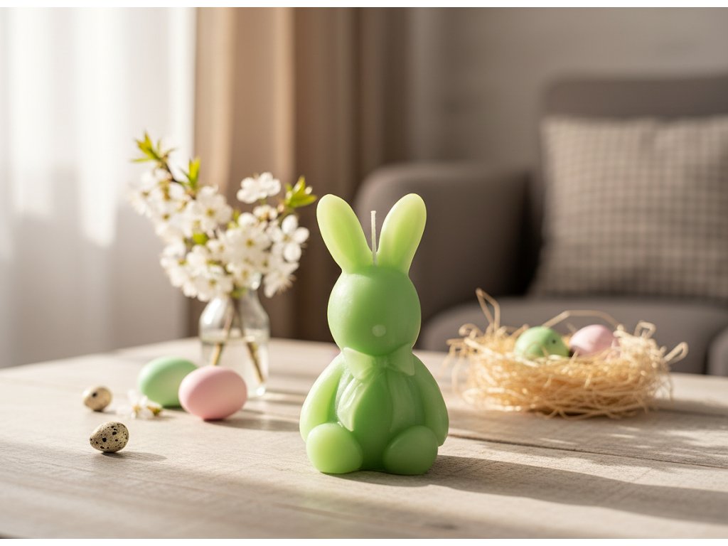 Svíčka ve tvaru zajíčka - Dokonalý doplněk k jarní výzdobě - Zelená svíčka ve tvaru zajíce 96 g