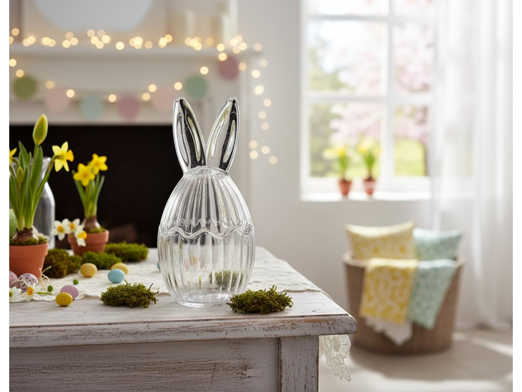 Vneste do svého domova nádech velikonočního kouzla s nádobou MORBIDO. Její jedinečný tvar se zaječími oušky a struktura rýhovaného skla jí propůjčují eleganci a lehkost.