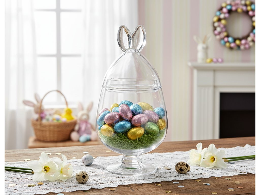 Velikonoční dóza | PRATA | velké skleněné vejce s ušima na noze | 17x35cm | 845050