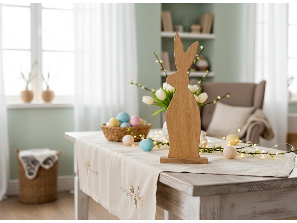 Dřevěný dekorativní zajíc je minimalistická velikonoční dekorace z přírodního dřeva, která se skvěle hodí do velikonočních aranžmá v minimalistickém stylu i všude tam, kde se počítá s přírodními akcenty - skandinávský, boho, botanický styl.