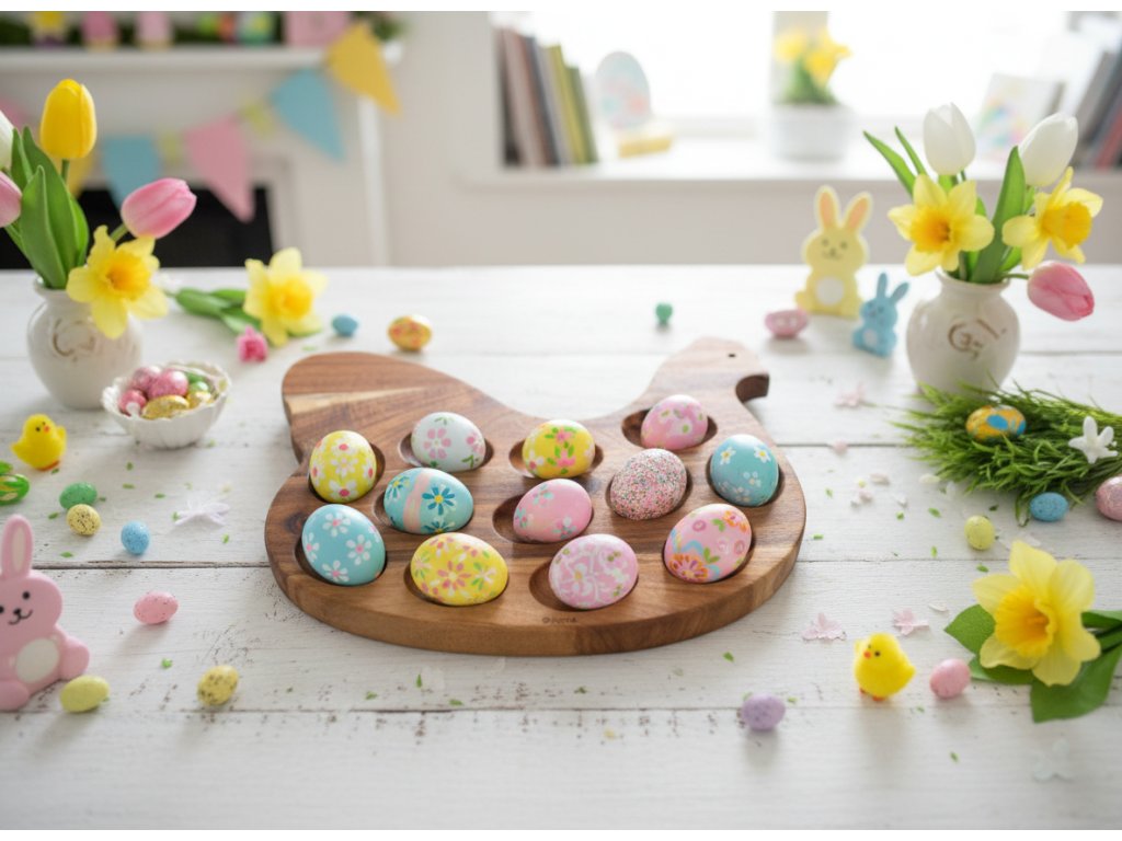Díky speciálně tvarovaným prohlubním je podnos ideální pro servírování vařených vajec, velikonočních vajíček nebo občerstvení. Díky svému jedinečnému designu se stane ústředním bodem vašeho svátečního stolu.
