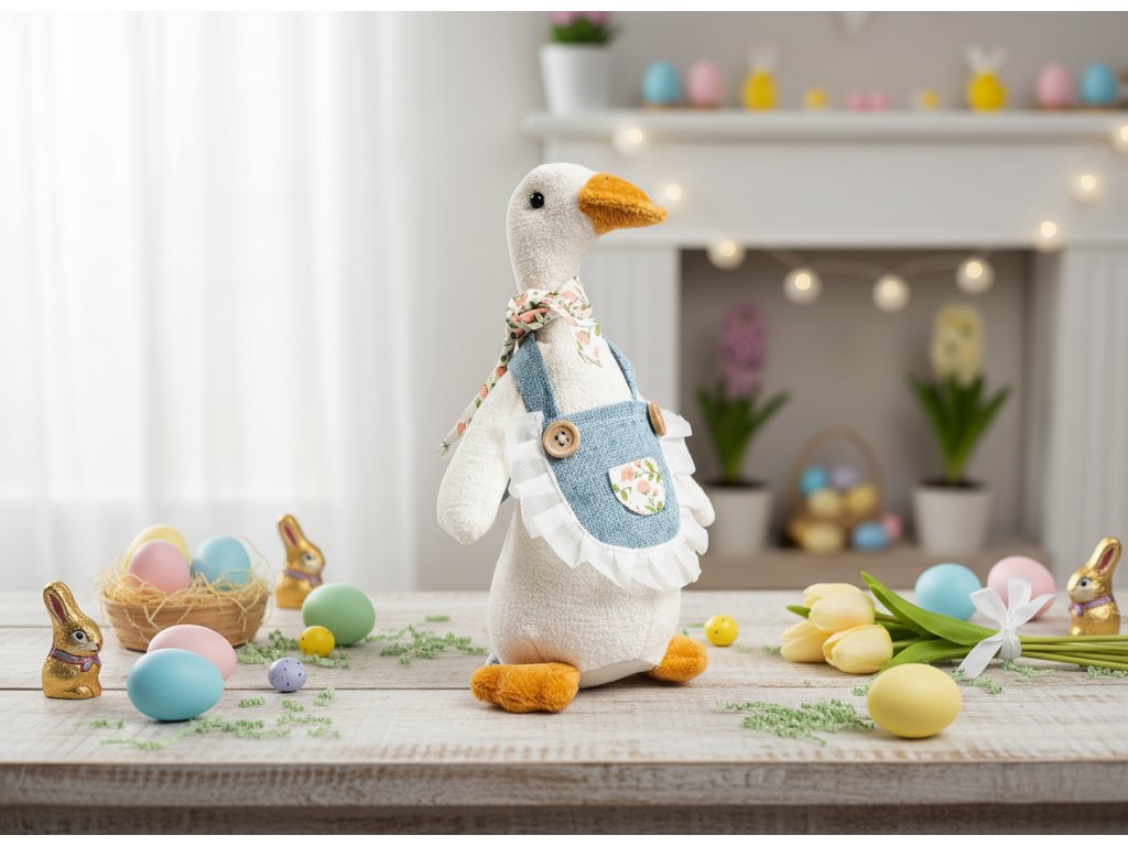 Figurka v podobě půvabné husičky je dokonalou dekorací, která vnese do vašeho interiéru nádech radosti a kouzla. Je vyrobena s důrazem na detail a potěší svými jemnými barvami. Je ideální volbou pro útulnou sezónní dekoraci.