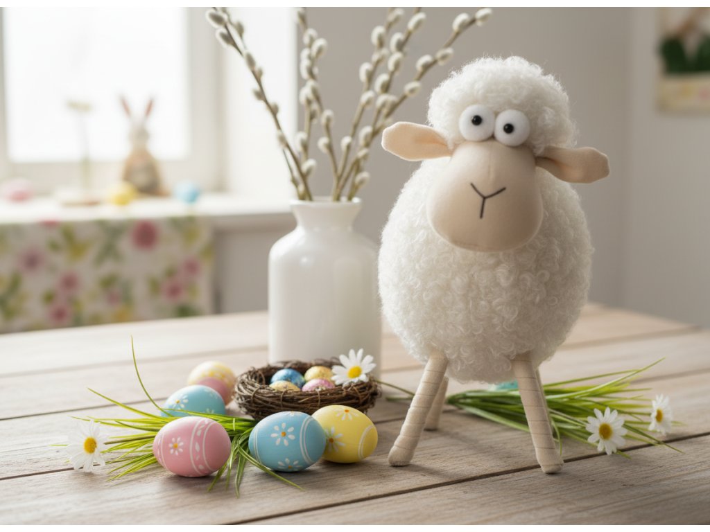 Roztomilý tvar ovečky s měkkou kožešinou - Skvělý doplněk k velikonoční výzdobě - Velikonoční beránek s měkkou kožešinou