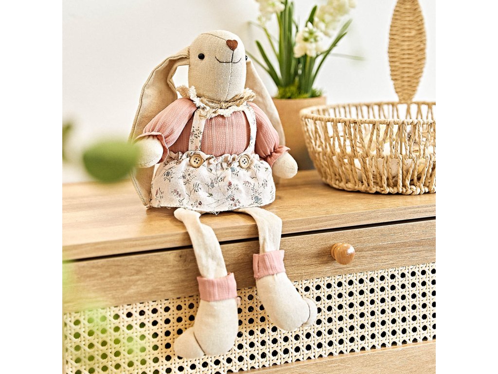 Pečlivě propracované detaily - Stabilní díky vnitřnímu zatížení - Roztomilé oblečení a přátelská tvář - Vysoce kvalitní materiály - Velikonoční zajíček sedící v růžovém oblečení