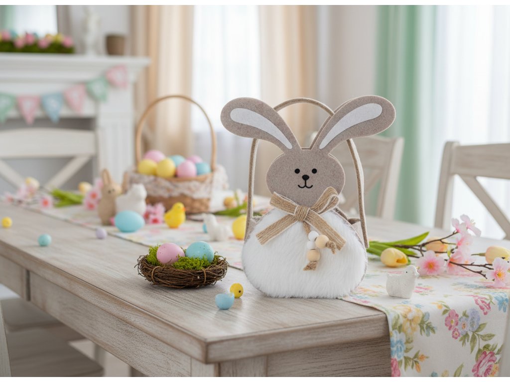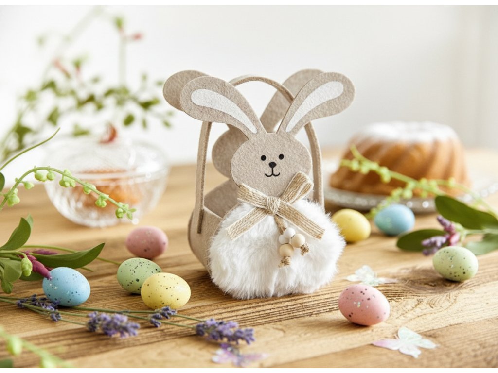 Roztomilý tvar zajíčka - Pečlivě propracovaný estetický vzhled - Měkká plsť - Ideální jako dekorace a na malou hostinu - Plstěný velikonoční košík ve tvaru zajíčka