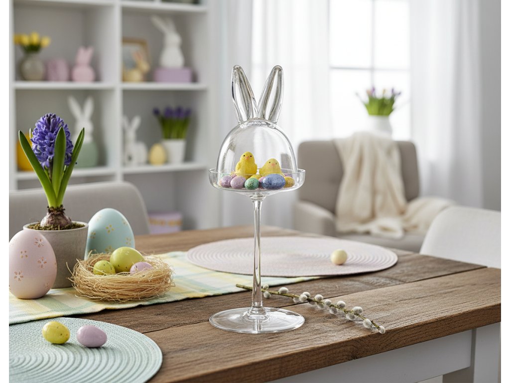 Velikonoční mísa s ozdobným víkem | PRATA | sklo s víkem králík | 12x33cm | 845098