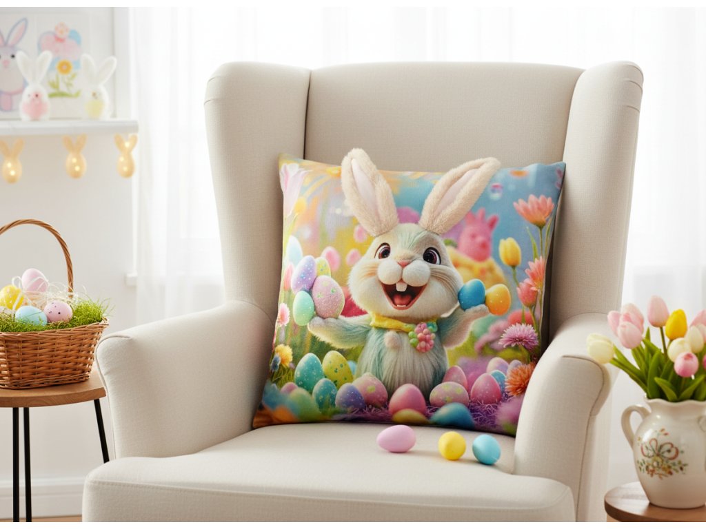 Motivy velikonočních zajíčků symbolizují jaro, radost a nové začátky 🌷. Polštáře jsou vyrobeny z příjemných materiálů a zdobené kvalitním fototiskem s jasnými a stálými barvami, který krásně vynikne v každém interiéru. Snadno je sladíte s dalšími velikonočními dekoracemi a vytvoříte útulnou sváteční atmosféru.