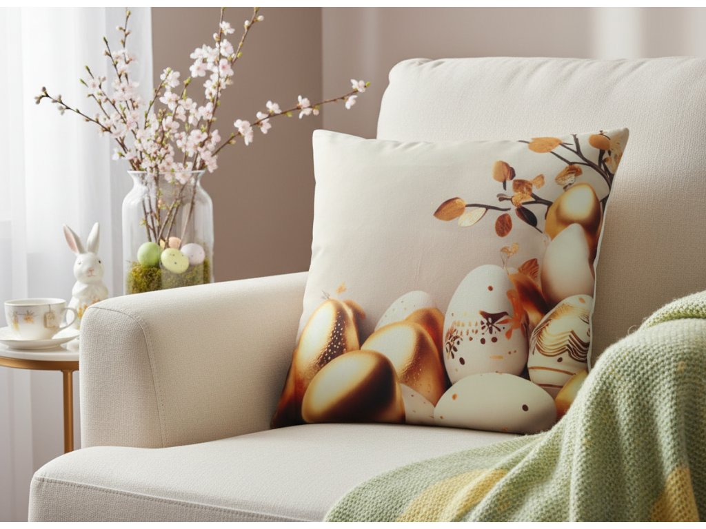 Motivy zdobených kraslic, malovaných vajíček a jarních ornamentů jsou vytištěny pomocí kvalitního fototisku s ostrými detaily a sytými barvami, které zůstávají krásné i po praní. Polštáře jsou vyrobeny z příjemných materiálů a snadno je sladíte s dalšími jarními a velikonočními dekoracemi.