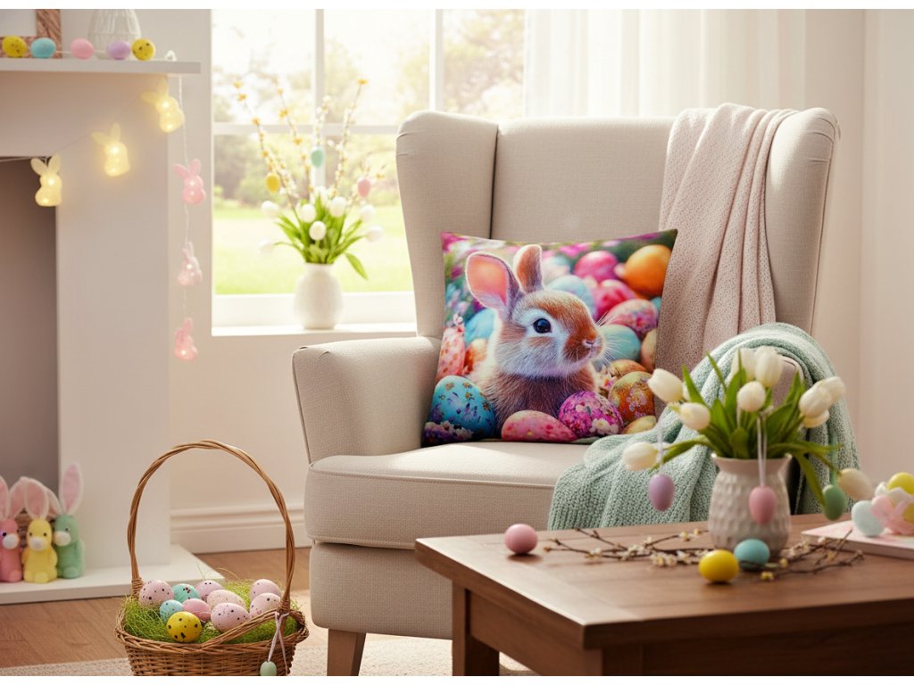 Motivy velikonočních zajíčků symbolizují jaro, radost a nové začátky 🌷. Polštáře jsou vyrobeny z příjemných materiálů a zdobené kvalitním fototiskem s jasnými a stálými barvami, který krásně vynikne v každém interiéru. Snadno je sladíte s dalšími velikonočními dekoracemi a vytvoříte útulnou sváteční atmosféru.