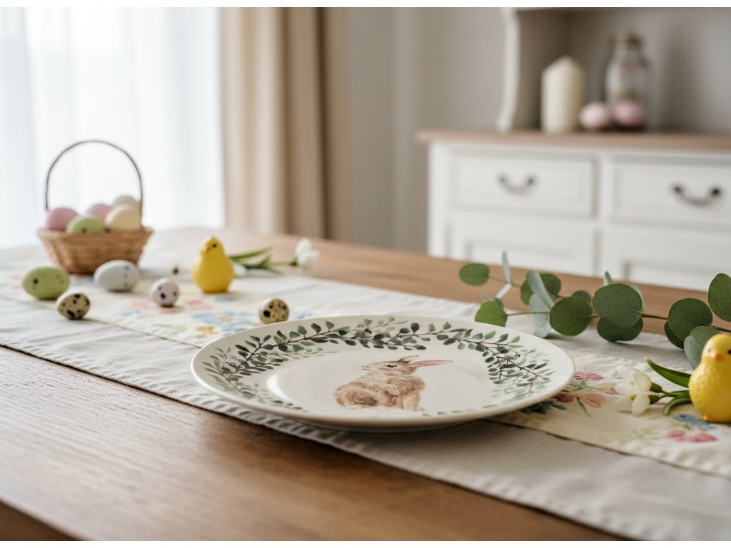Chcete se co nejlépe připravit na velikonoční návštěvu svých hostů? Talíř zdobený grafikou znázorňující zajíčka obklopeného zelenými větvičkami vám pomůže krásně prostřít stůl. Je to ideální způsob, jak zpestřit své nádobí a dodat velikonoční nádech vašemu prostřenému stolu.