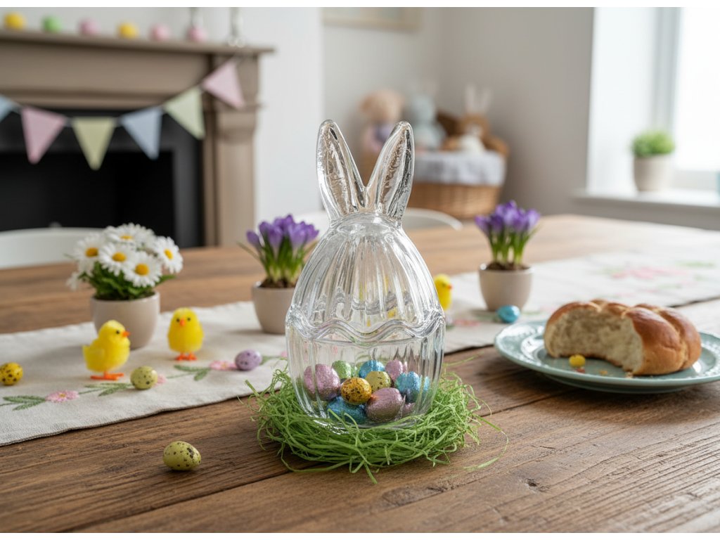 Velikonoční skleněná dóza RABBIT II. drážkovaná 17 cm 729935