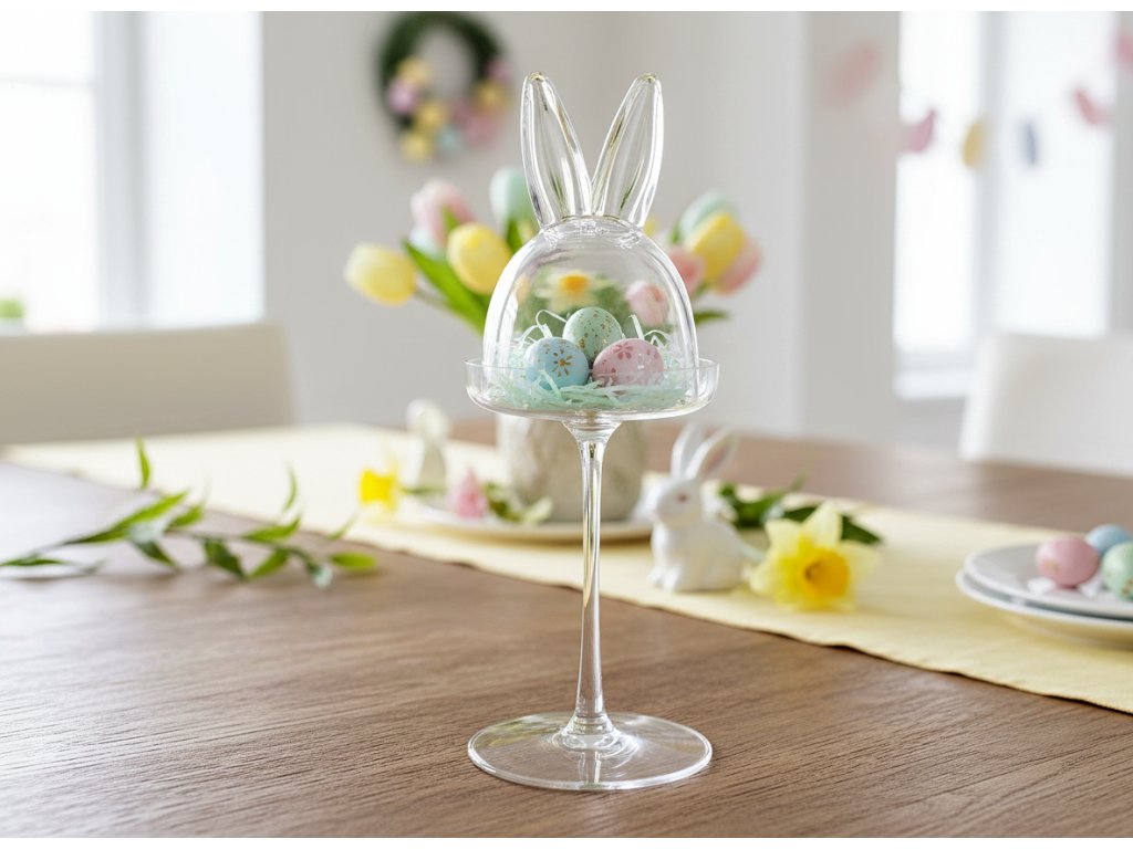 Velikonoční skleněná mísa LITTLE I. s víkem králičí ouška 12x33 cm 845098