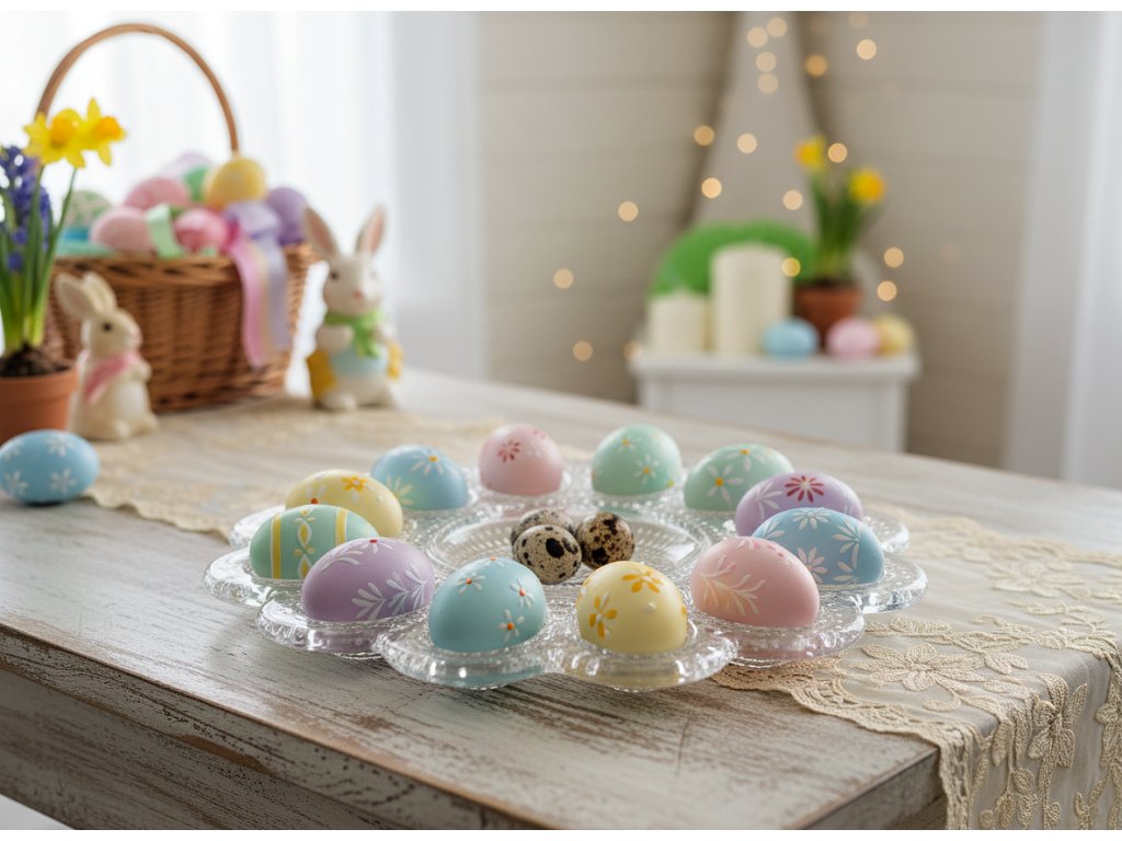 12 přihrádek na vejce - Prostor pro misku - Krásně zdobené sklo - Perfektně se hodí k jakémukoli nádobí - Velikonoční skleněná miska na vajíčka, 27 cm
