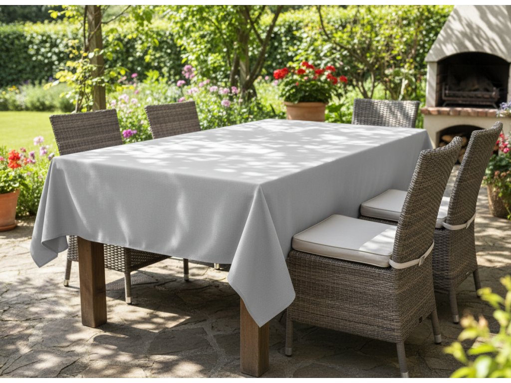 Kvalitní venkovní ubrus v moderních trendových barvách pro použití na zahradě nebo v pergole. Ubrus je nabízen ve více velikostech, je vyroben ze 100% pevné a odolné polyesterové tkaniny. Pevná struktura zabraňuje poškození, poškrábání, odření nebo roztržení materiálu. Venkovní ubrus má vodoodpudivé vlastnosti. Tkanina si zachovává dlouhou životnost.