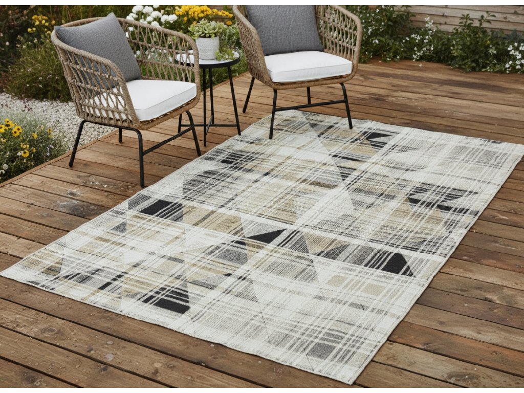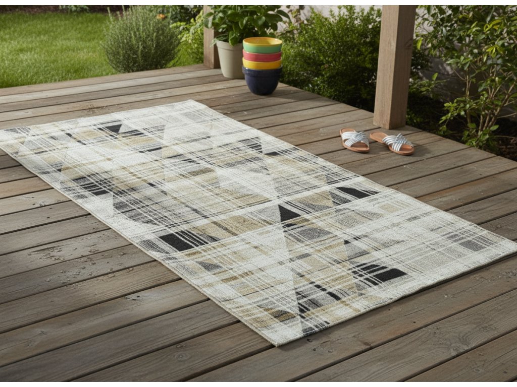 Venkovní vzorovaný běhoun TROJKAT krémová 80x150 cm Multidecor