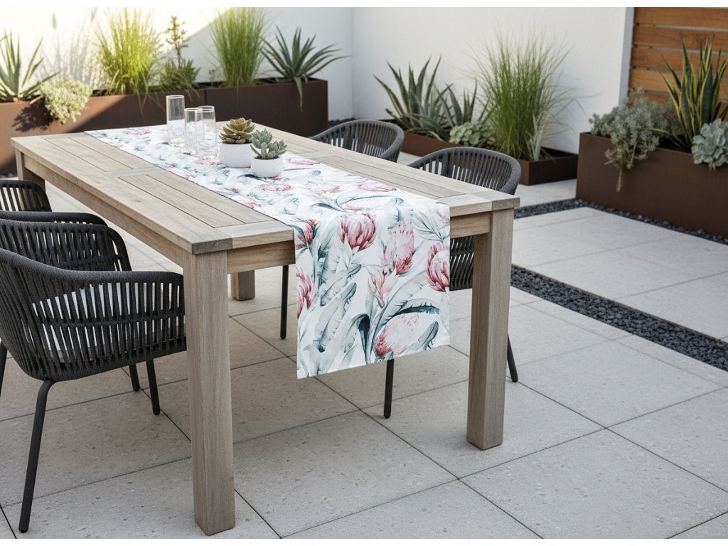 Dodejte svému stolu nádech letního kouzla díky tomuto dekorativnímu ubrusu ušitému z nepromokavé látky. Jeho krásný potisk s motivem letních květin vnese do vašeho prostoru svěžest a barvy a vytvoří dokonalou atmosféru pro venkovní setkání. Díky svým nepromokavým vlastnostem je ubrus odolný vůči vlhkosti a snadno se čistí, takže je skvělou volbou na terasu, balkon nebo zahradu. Stylový a praktický - dodá každému stolu výjimečný nádech!