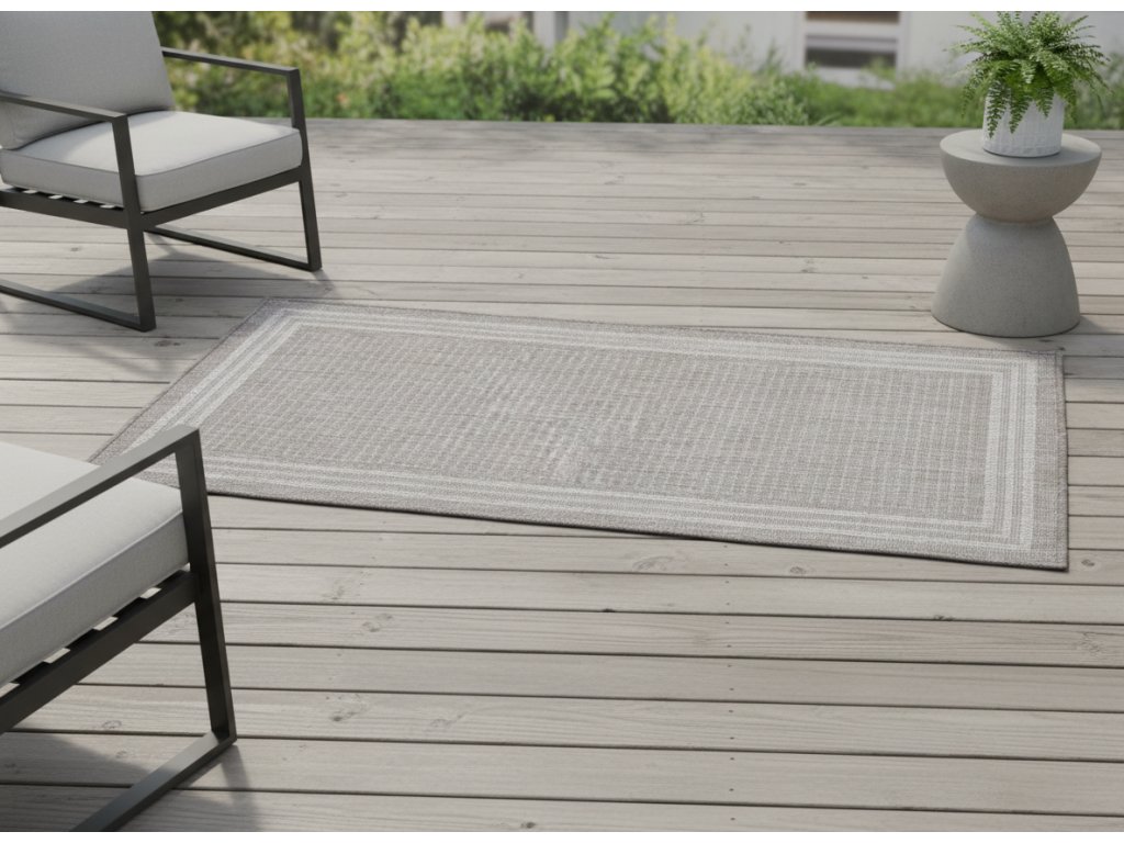 Venkovní vzorovaný koberec - běhoun EXPRESS FRAME šedá 60x100 cm Multidecor