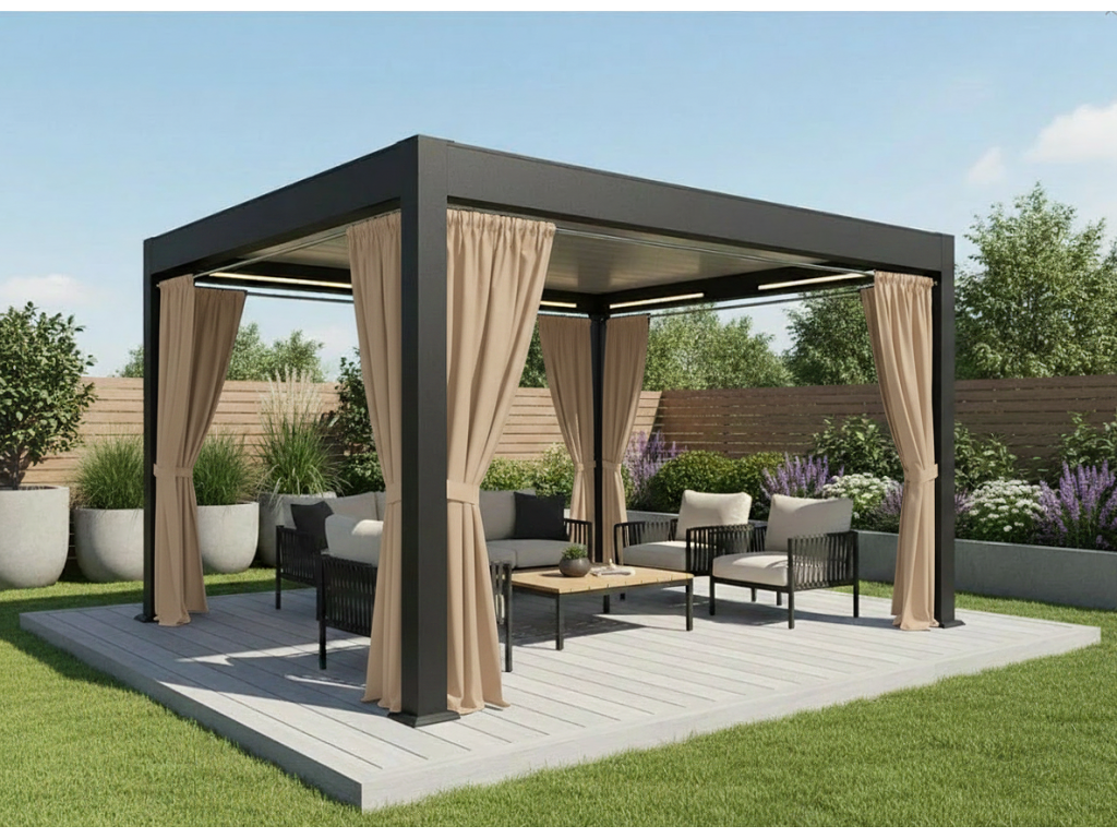 | Kategorie: | Jednobarevné venkovní závěsy do pergoly na tunýlek nebo s řasící páskou |