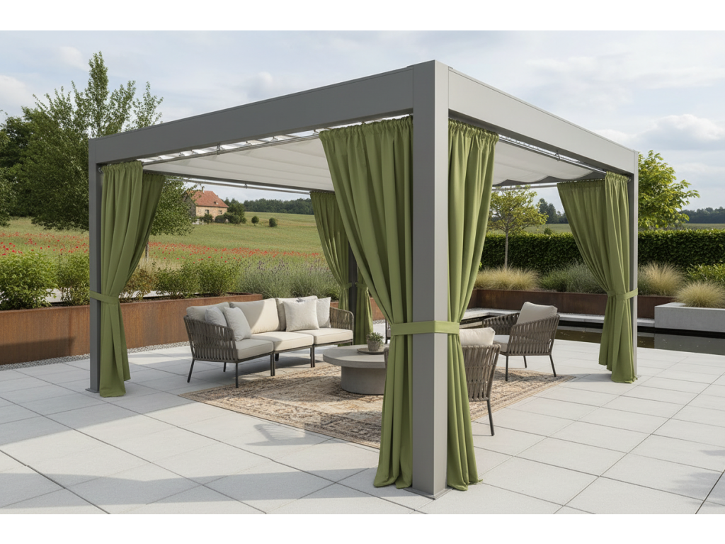 | Kategorie: | Jednobarevné venkovní závěsy do pergoly na tunýlek nebo s řasící páskou |