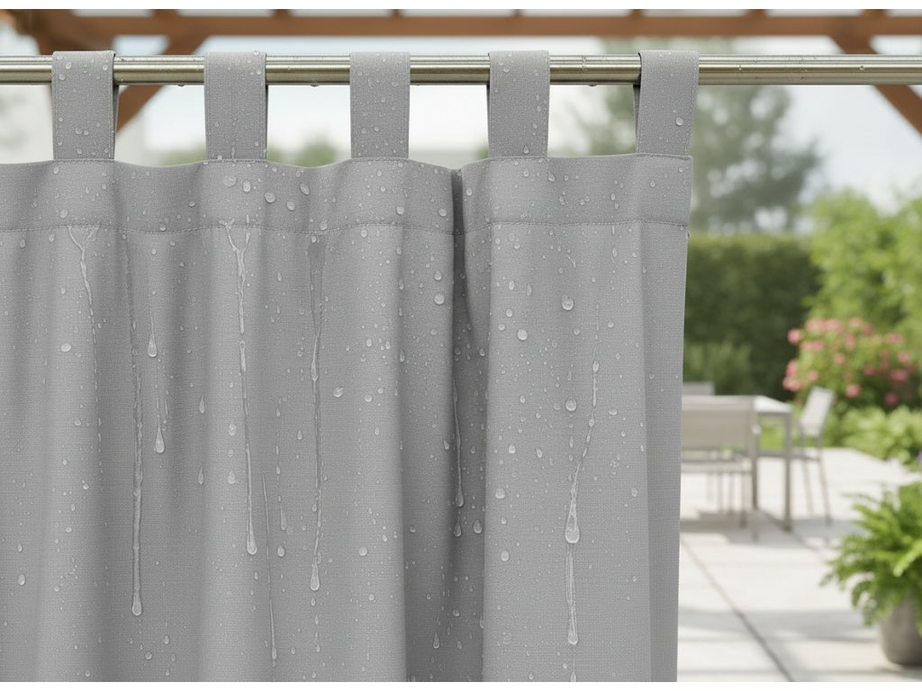 Voděodolný venkovní závěs je vyrobený z vysoce kvalitní látky. Je vhodný do pergoly, na balkón nebo do altánu. Závěs je odolný proti povětrnostním podmínkám, chrání před deštěm, eliminuje sluneční záření. Tkanina snáší nízké i vysoké teploty. Materiál je odolný proti poškrábání a poškození mechanickým způsobem. Závěs je oboustranný - stejná barva z rubu i lícu. V případě, pokud do svázaného závěsu nateče voda, doporučujeme nechat vyschnout, aby se v záhybech nevytvořila plíseň.