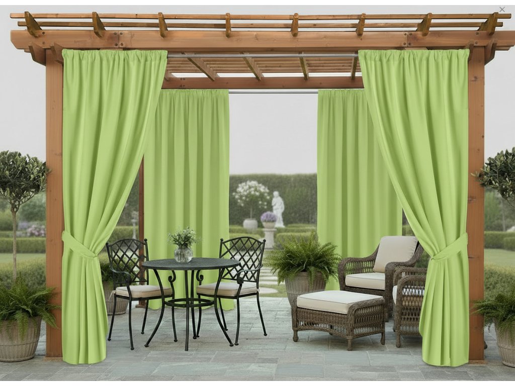 Voděodolný venkovní závěs je vyrobený z vysoce kvalitní látky. Je vhodný do pergoly, na balkón nebo do altánu. Závěs je odolný proti povětrnostním podmínkám, chrání před deštěm, eliminuje sluneční záření. Tkanina snáší nízké i vysoké teploty. Materiál je odolný proti poškrábání a poškození mechanickým způsobem. Závěs je oboustranný - stejná barva z rubu i lícu. V případě, pokud do svázaného závěsu nateče voda, doporučujeme nechat vyschnout, aby se v záhybech nevytvořila plíseň.