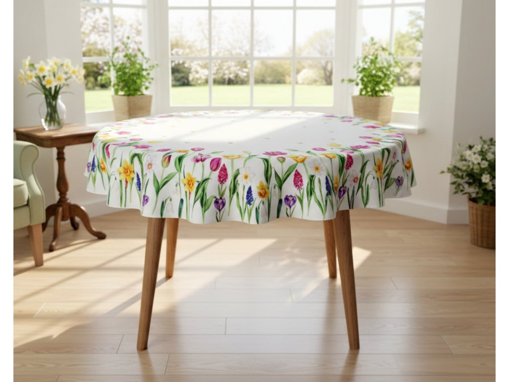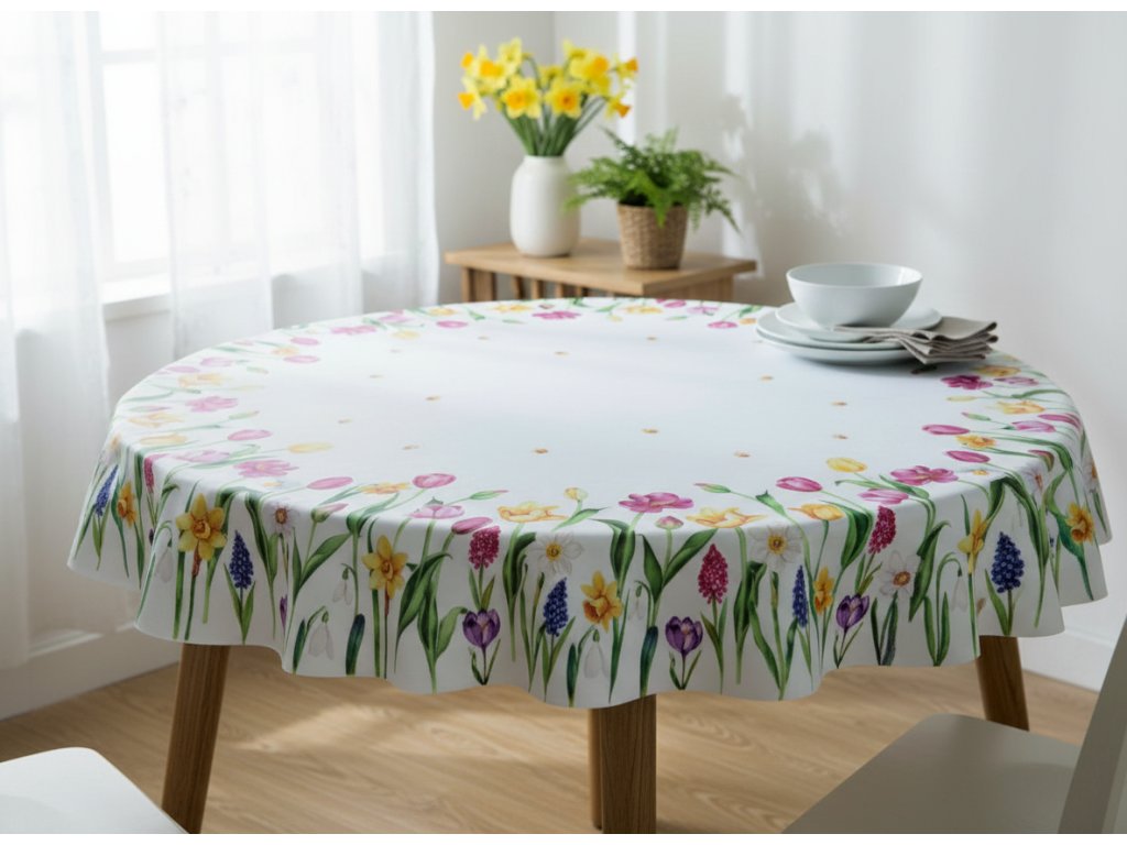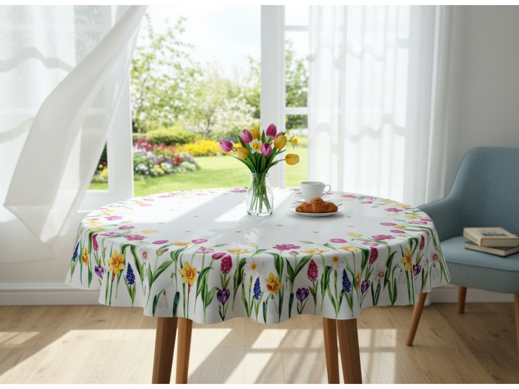 Vzorovaný ubrus na stůl SPRING TULIPS Ø 130 cm Mybesthome