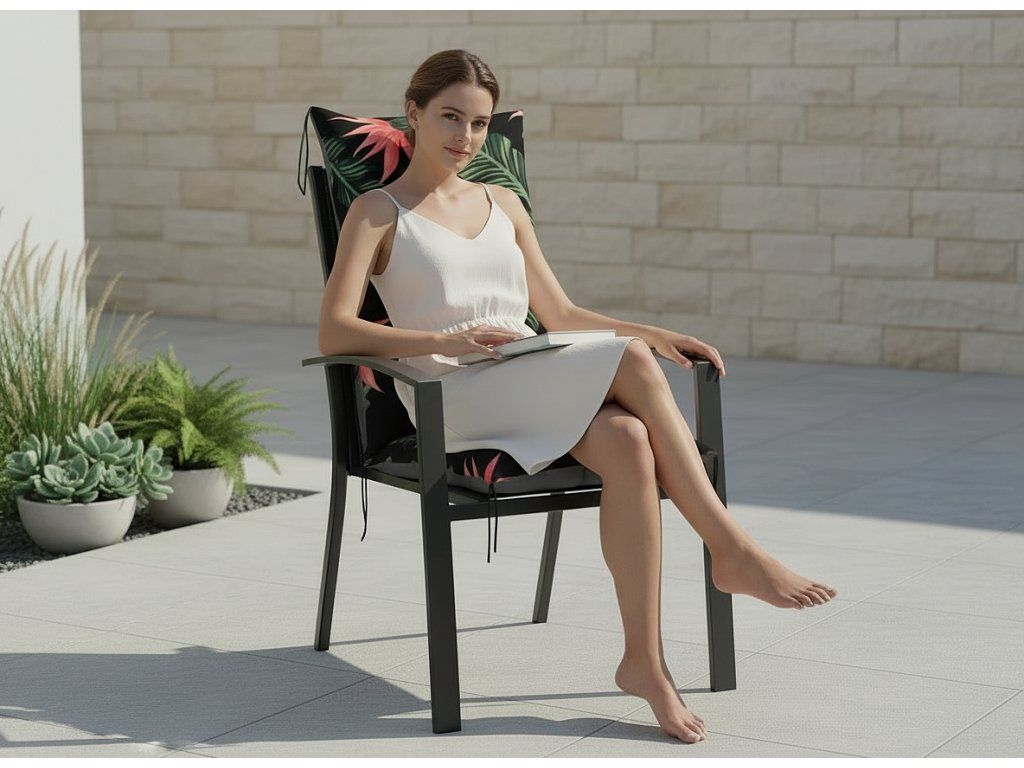 Zahradní prošívaný podsedák na židli s opěrkou CALLUM