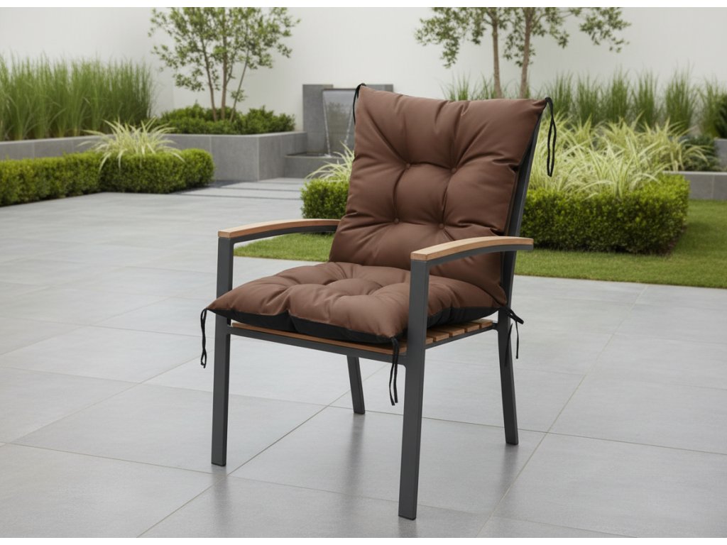 Zahradní prošívaný podsedák na židli s opěrkou OSCAR 50x50x50 cm color 22 hnědá Mybesthome