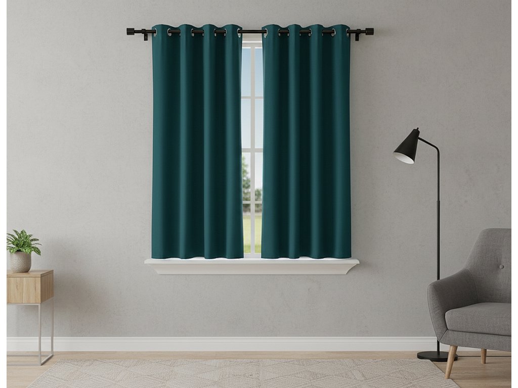 Zatemňovací krátký závěs s kroužky "BLACKOUT" NEW VITORIA 135x160 cm petrolejová (cena za 1 kus) Mybesthome