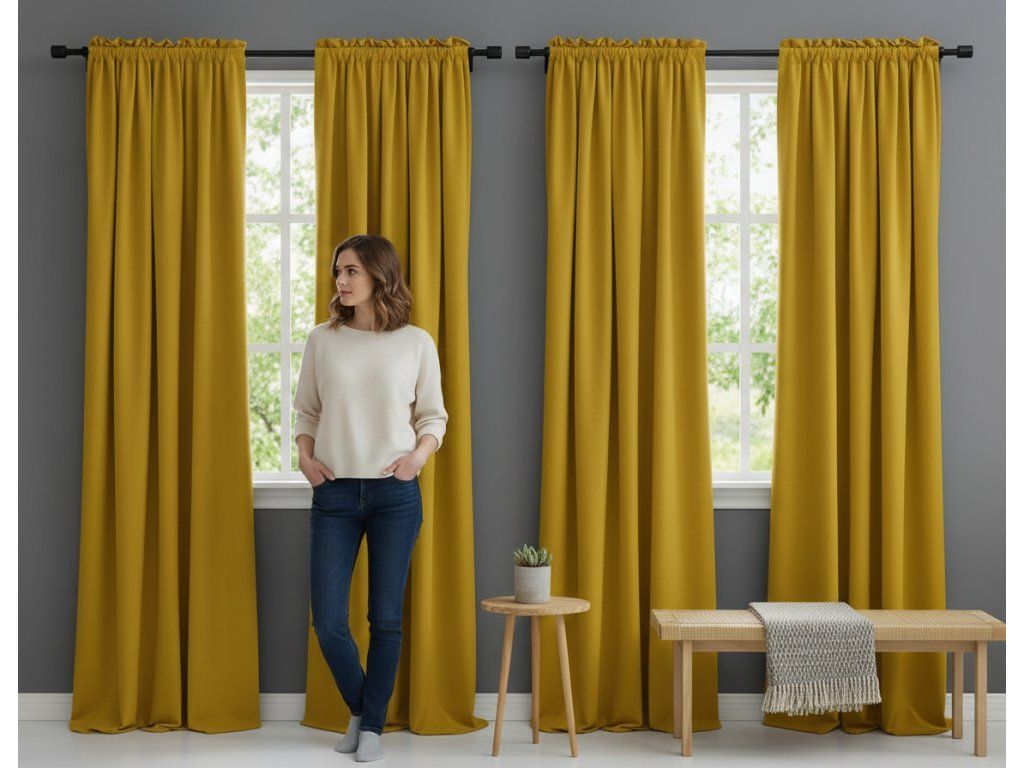 Zatemňovací závěs s řasící páskou "BLACKOUT" VIGO 135x250 cm, mustard/hořčicová, (cena za 1 kus) MyBestHome